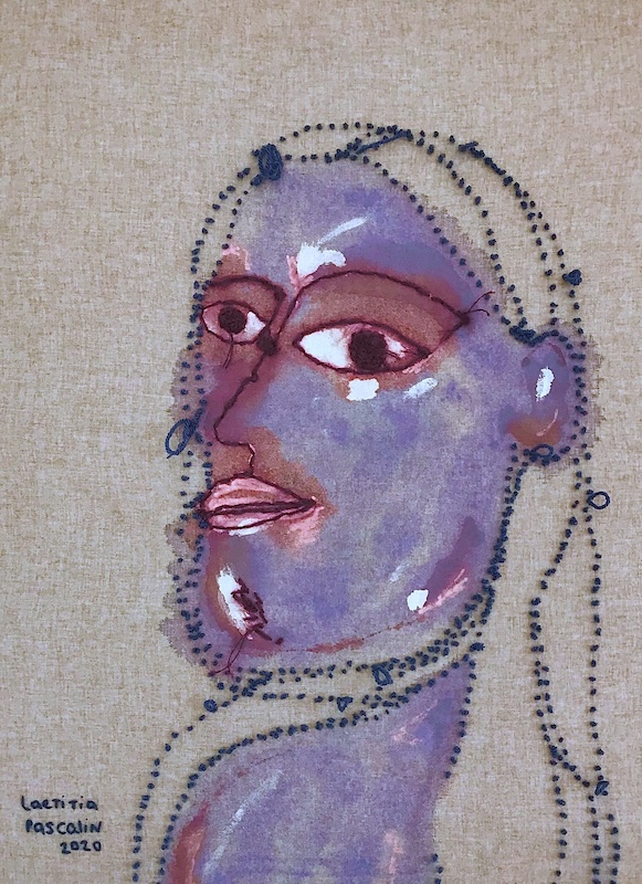 Laetitia Pascalin brode comme elle dessine — avec urgence et liberté. Formée à l’École de Couture de Lausanne puis à la HEAD de Genève, cette artiste suisse a fait du textile son terrain d’expérimentation.